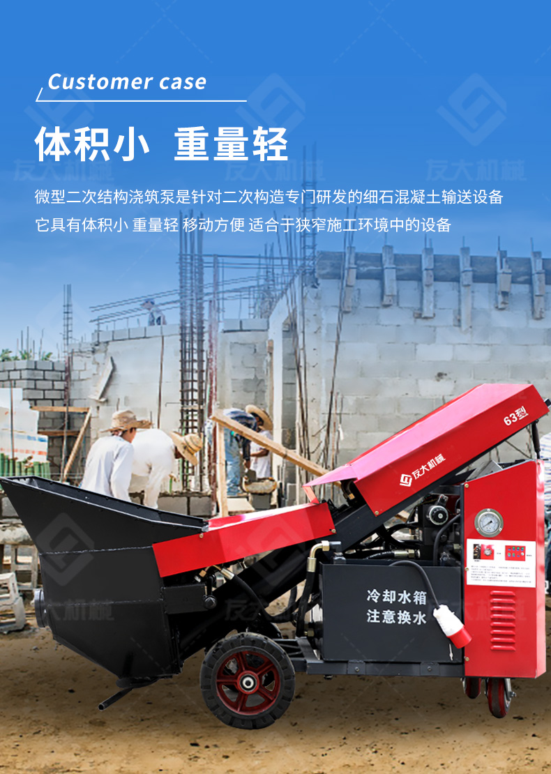 越来越多的建筑工地都选择使用微型二次结构浇筑泵,7.5kw手推式二次构造柱泵既可以适用在高层建筑灰砂浆及细石混凝土输送、二次构造柱注浆、水库、水电站、港口、码头中各种压力注浆,又可以适用...